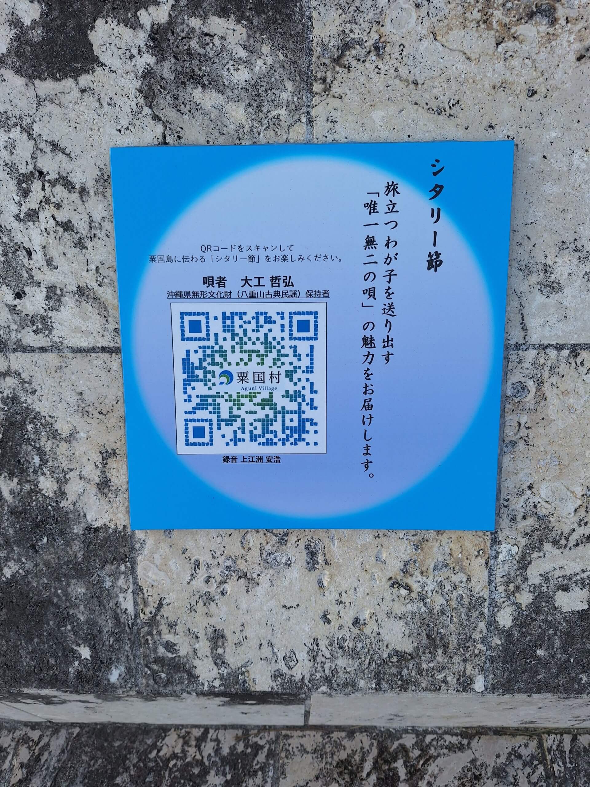 シターリ節歌碑にスマホのQRコードを翳せば