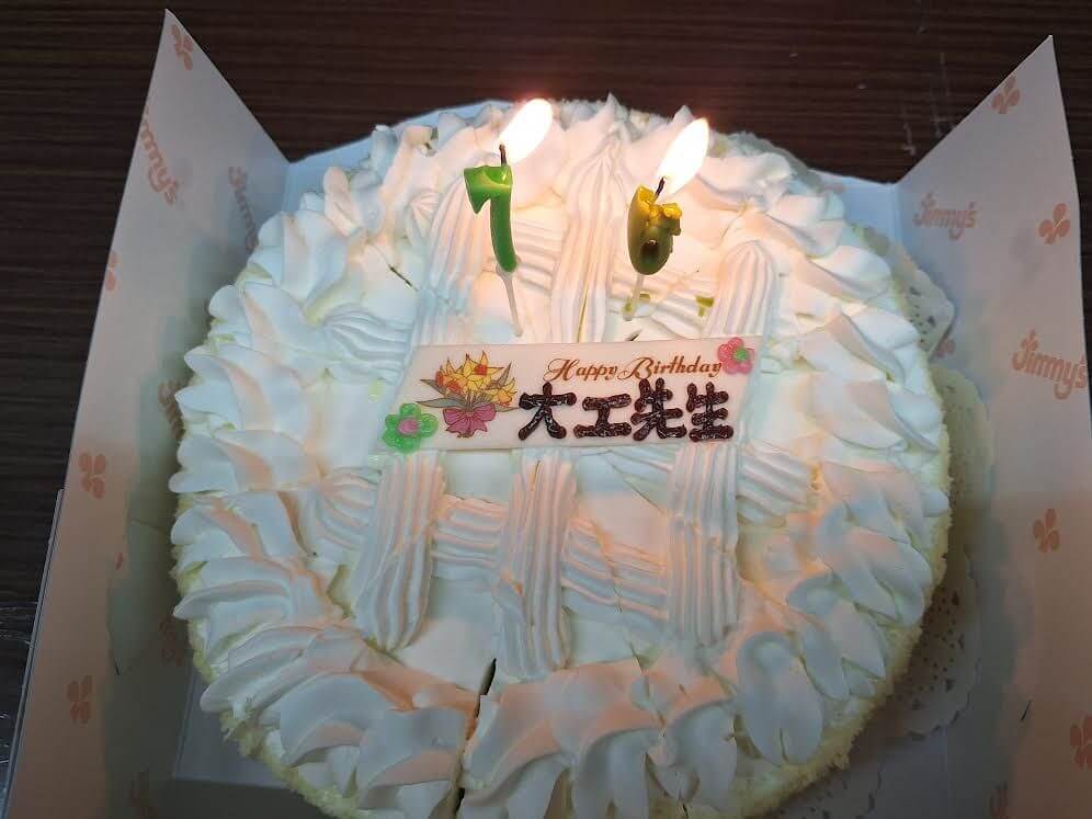 みんなからサプライズでハッピーバースデーのプレゼントを