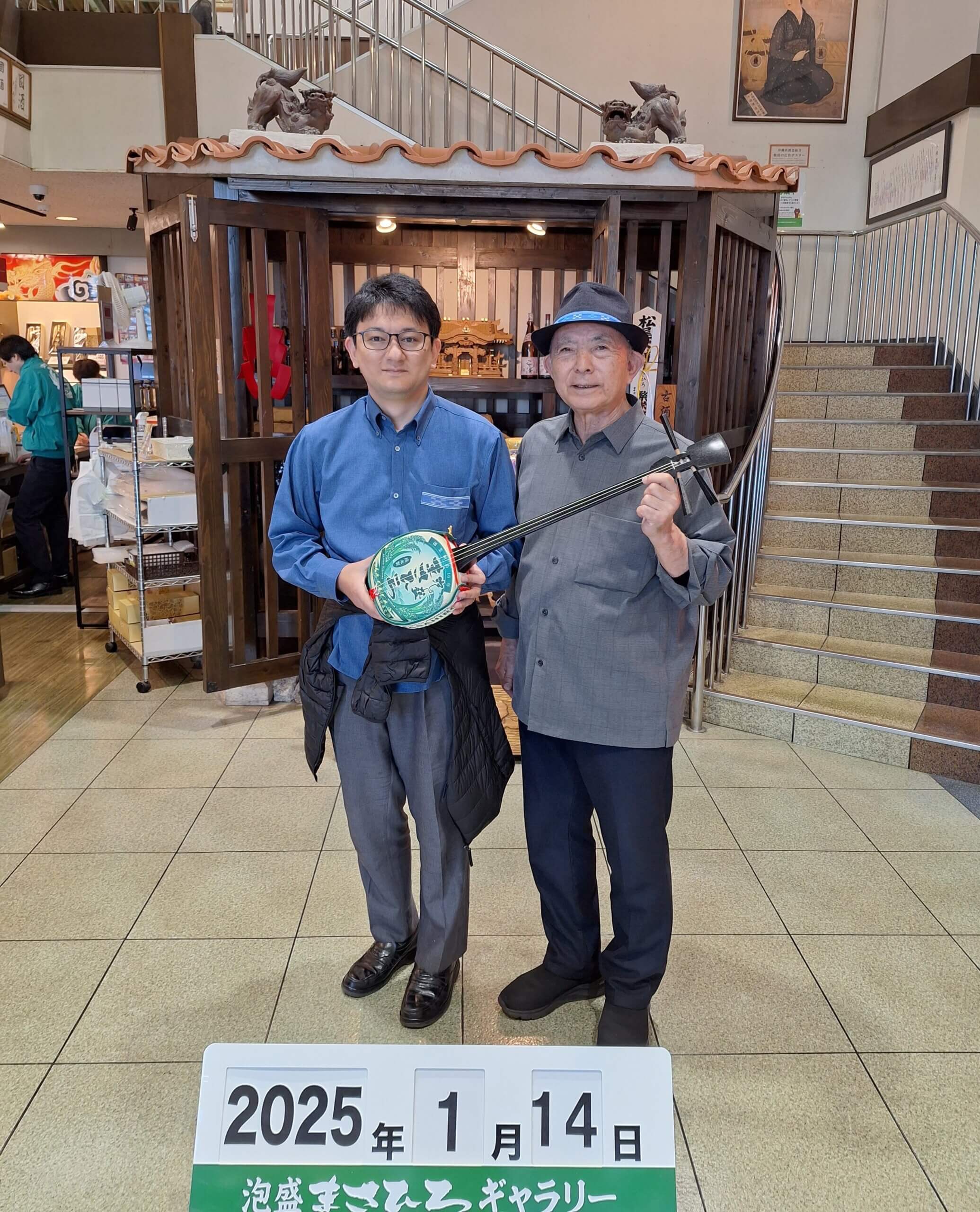 オリジナル三線で特別にロビーでプチライブをしました。