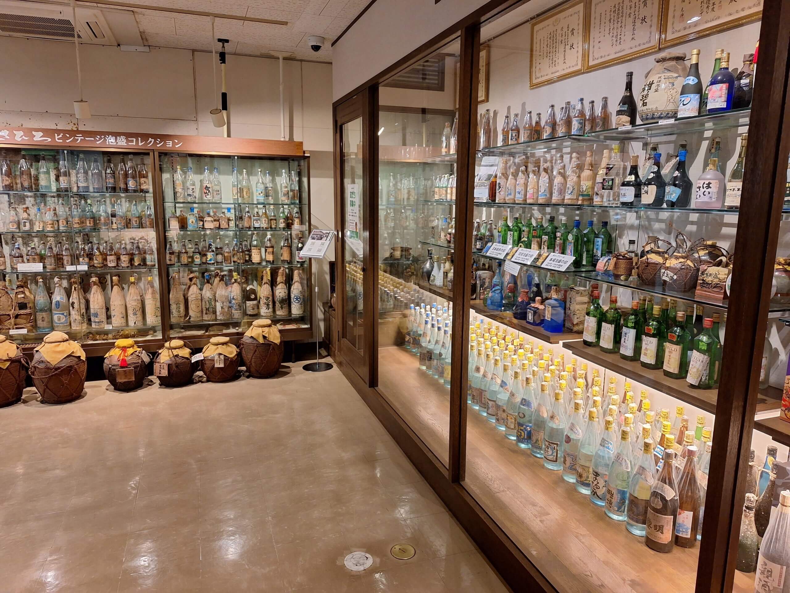 ギャラリー内も全琉球の酒造所から収集された歴史的な銘柄を展示されていた