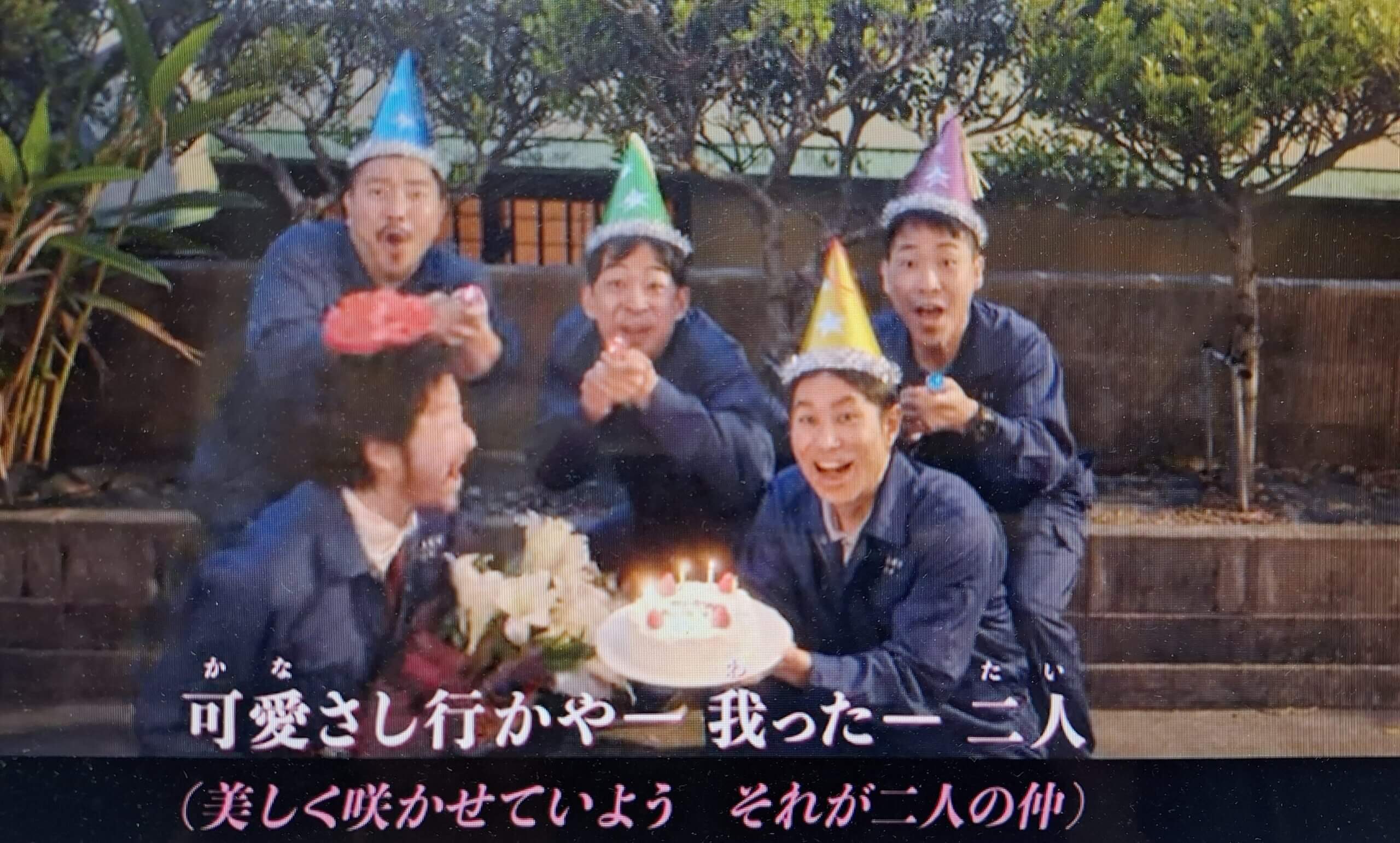 監督曰く、ワンコーラスの予定があまりも歌唱の雰囲気がいいので、