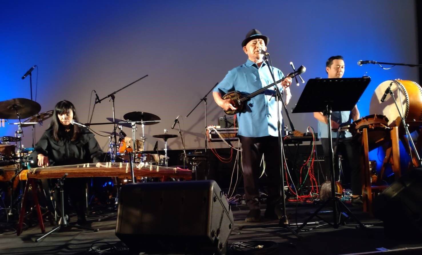 それぞれの持ち時間演奏の後、3部は三組が共演して「アメリカ節」「世果報節」をセッショして