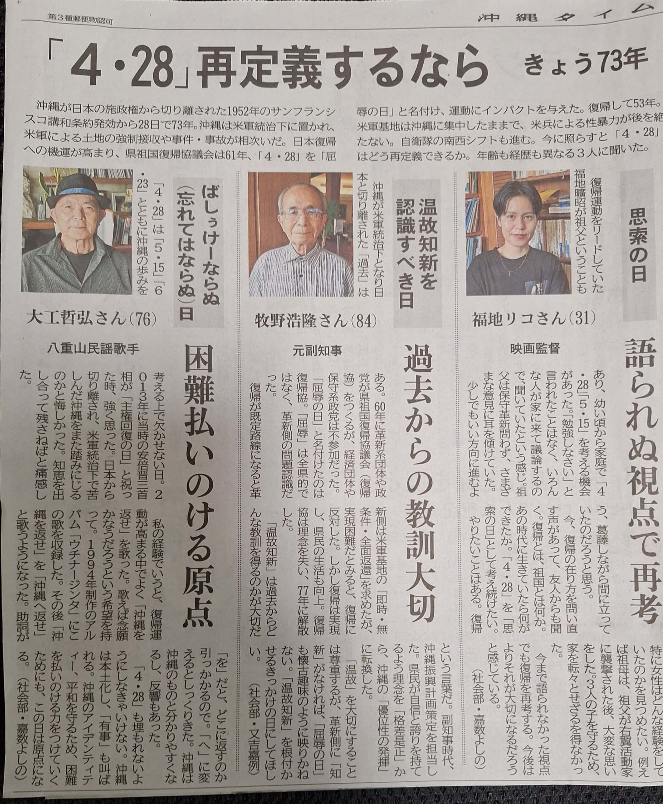 沖縄ではその発効された4月28日を「ヨンテン・ニーハチ」と称し