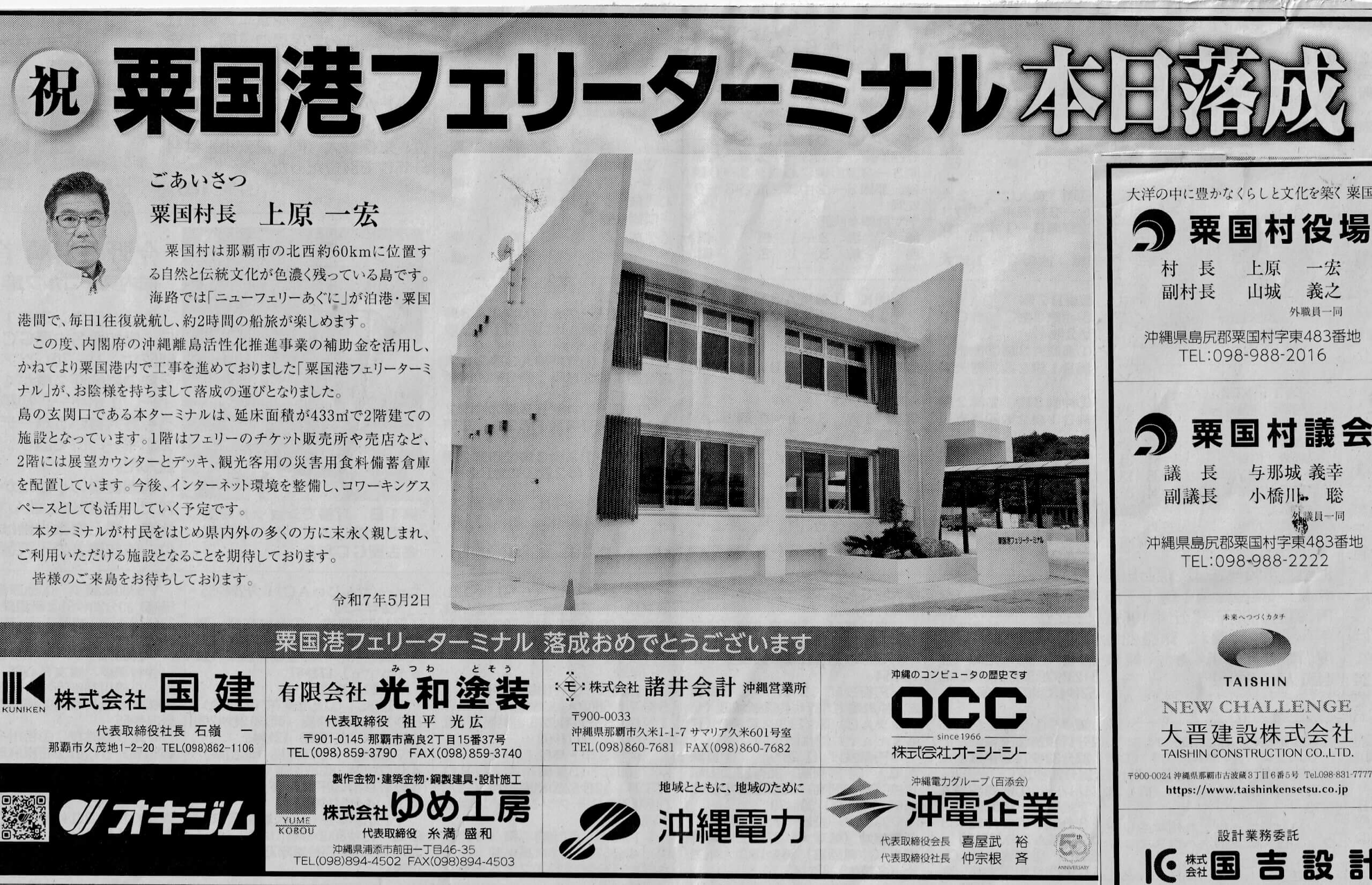 かねてから粟国港内で工事を進めておりました。島の玄関口である「粟国港フェリーターミナル」が