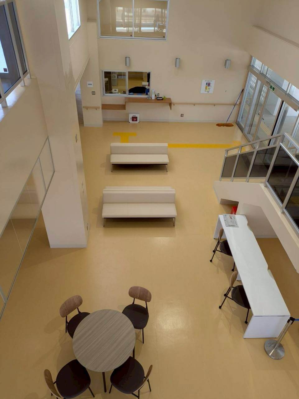 2回建て施設で一階はフェリーチケット販売所や売店など、また展望デッキと観光客の災害用災害備蓄用食糧倉庫を配置してあります。今後インターネット環境を整備し、コワーキングスペースとしても活用していく予定です。
