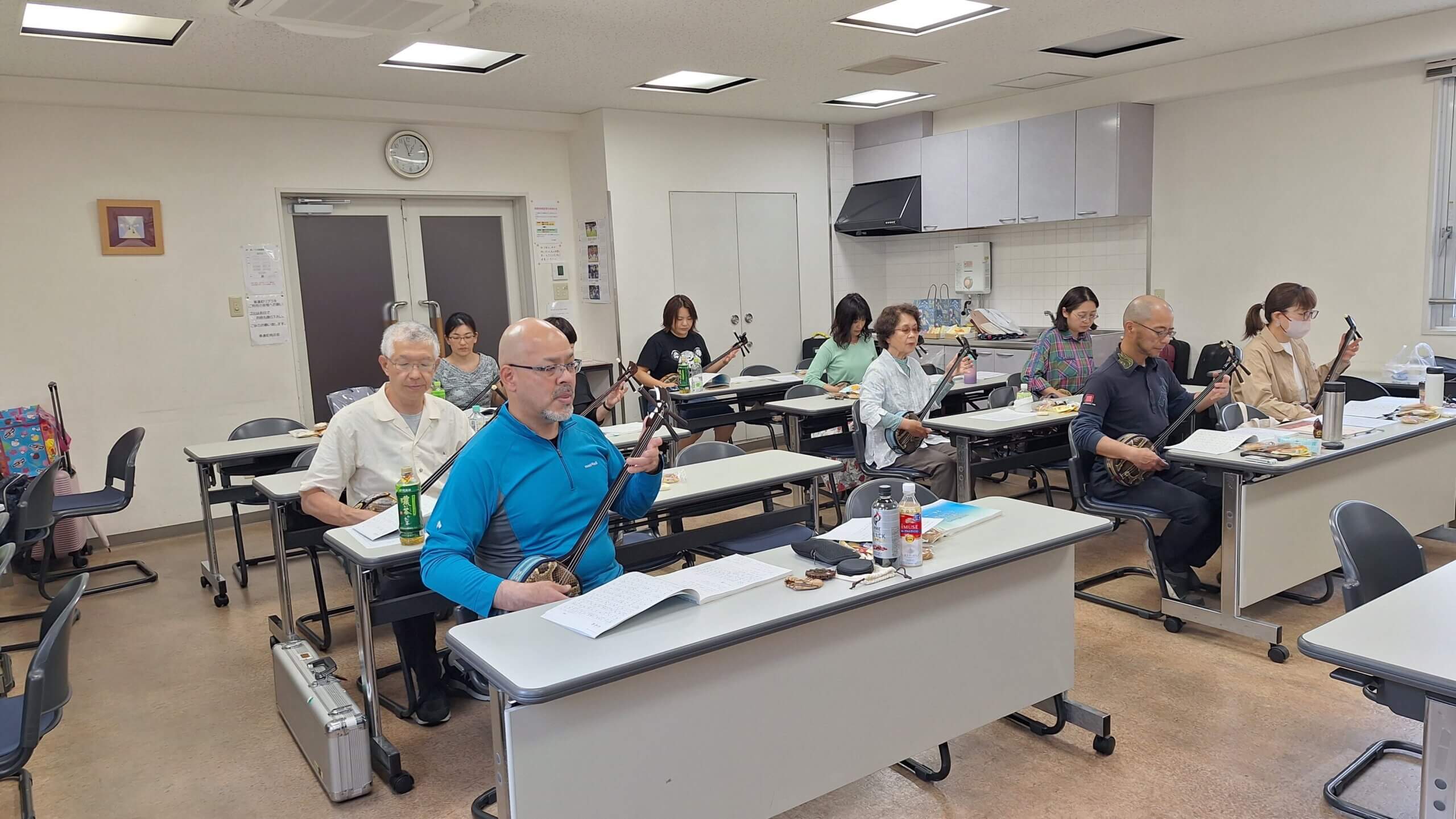 熱心なる稽古は時間との闘い、本当にみんな真面目に八重山民謡と向き合っています。