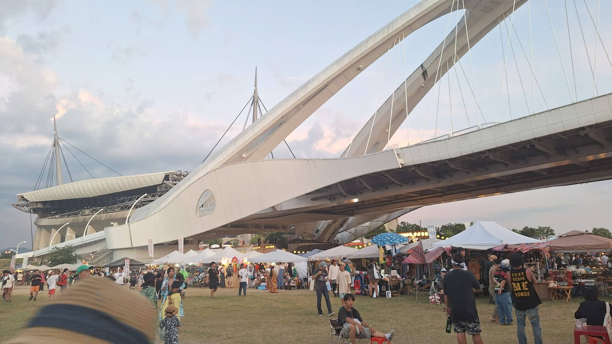 橋の下で多くの人々が音楽を楽しみ、食を楽しむ、その想いは