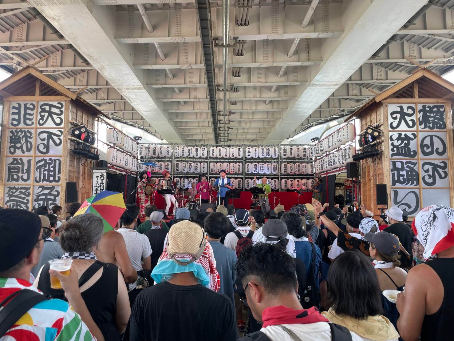 「橋の下音楽祭」が今年は14日~16日「橋の下大盆踊り」に出演しました。