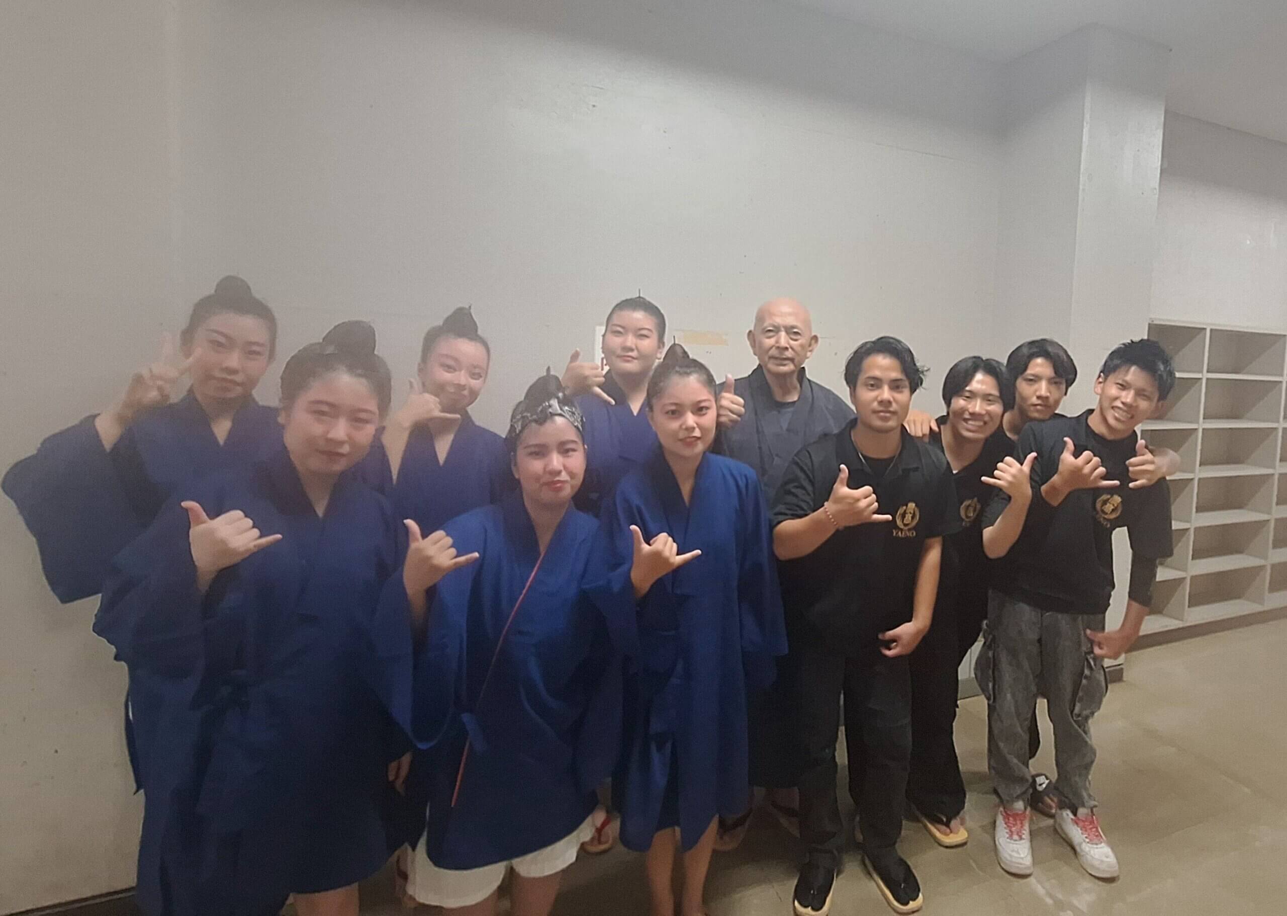 後輩の八重山農林の芸能部と一緒に記念写真。