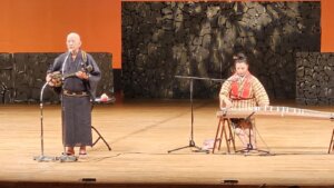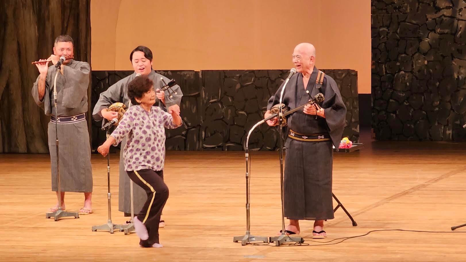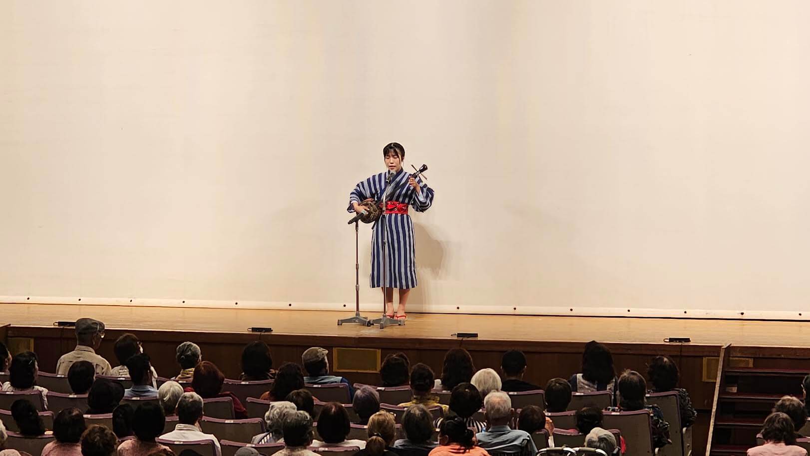敬老会に合せたオリジナルの歌詞で「でんさ節」八重山の詞でオリジナル曲「さにしゃ=うれしい」大工の作詞作曲(今月末の新譜アルバムに収めてあります)
