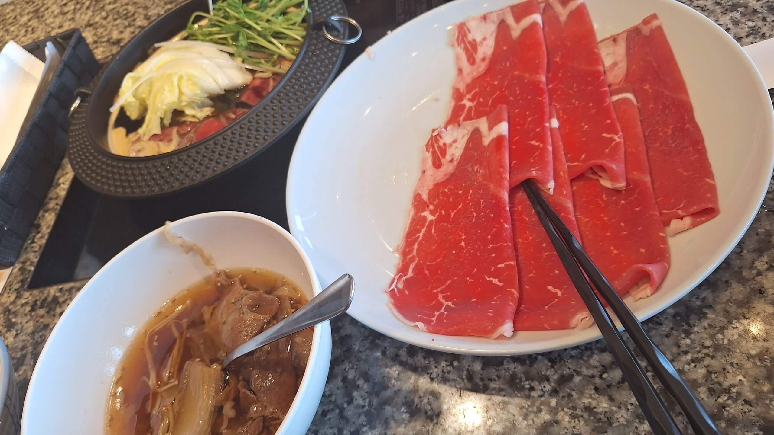 スキヤキ鍋をご馳走になつた