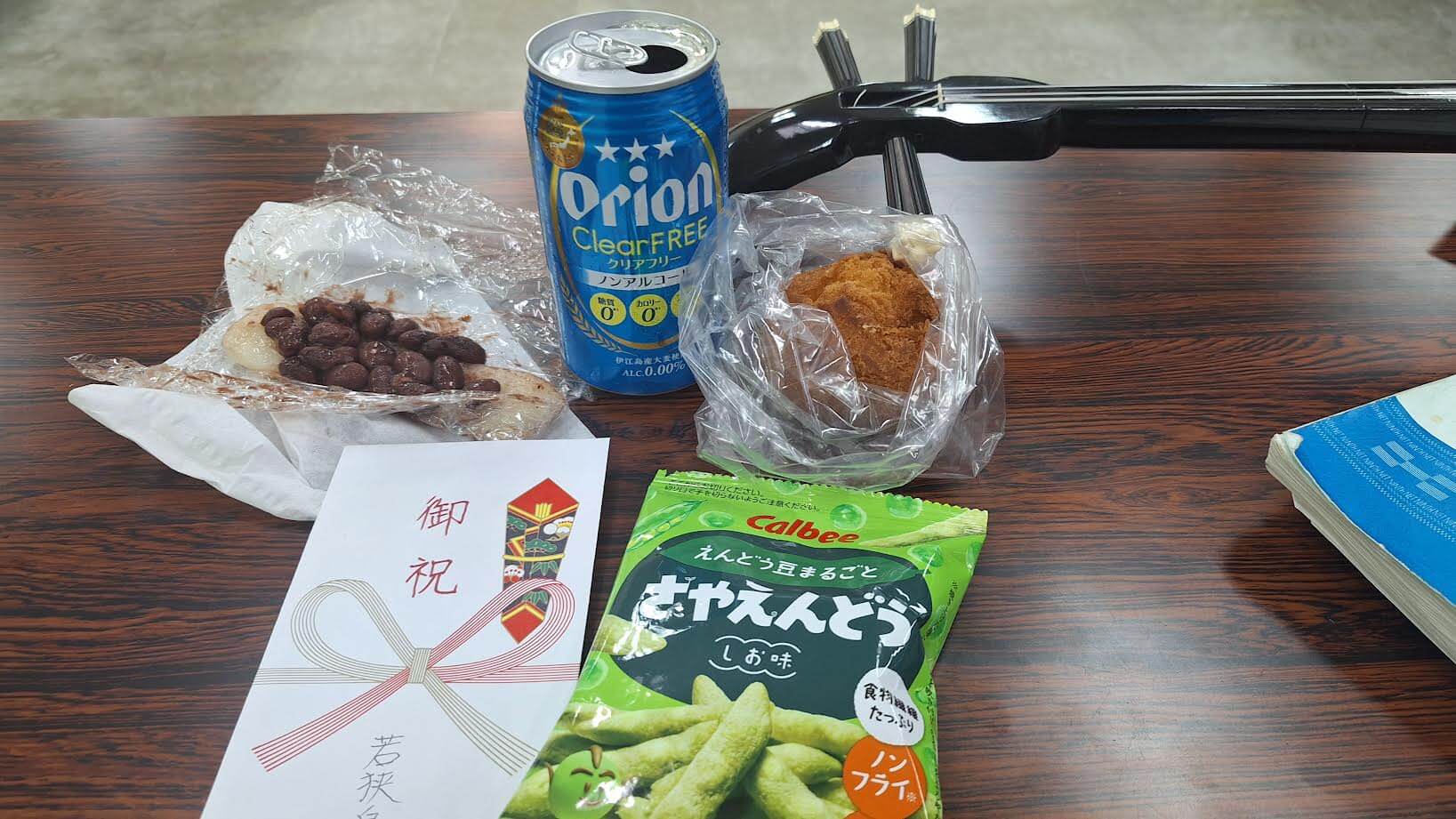 昨夜の稽古に西表くんが遊びに来てくれました。ケーキと金一封の贈呈