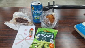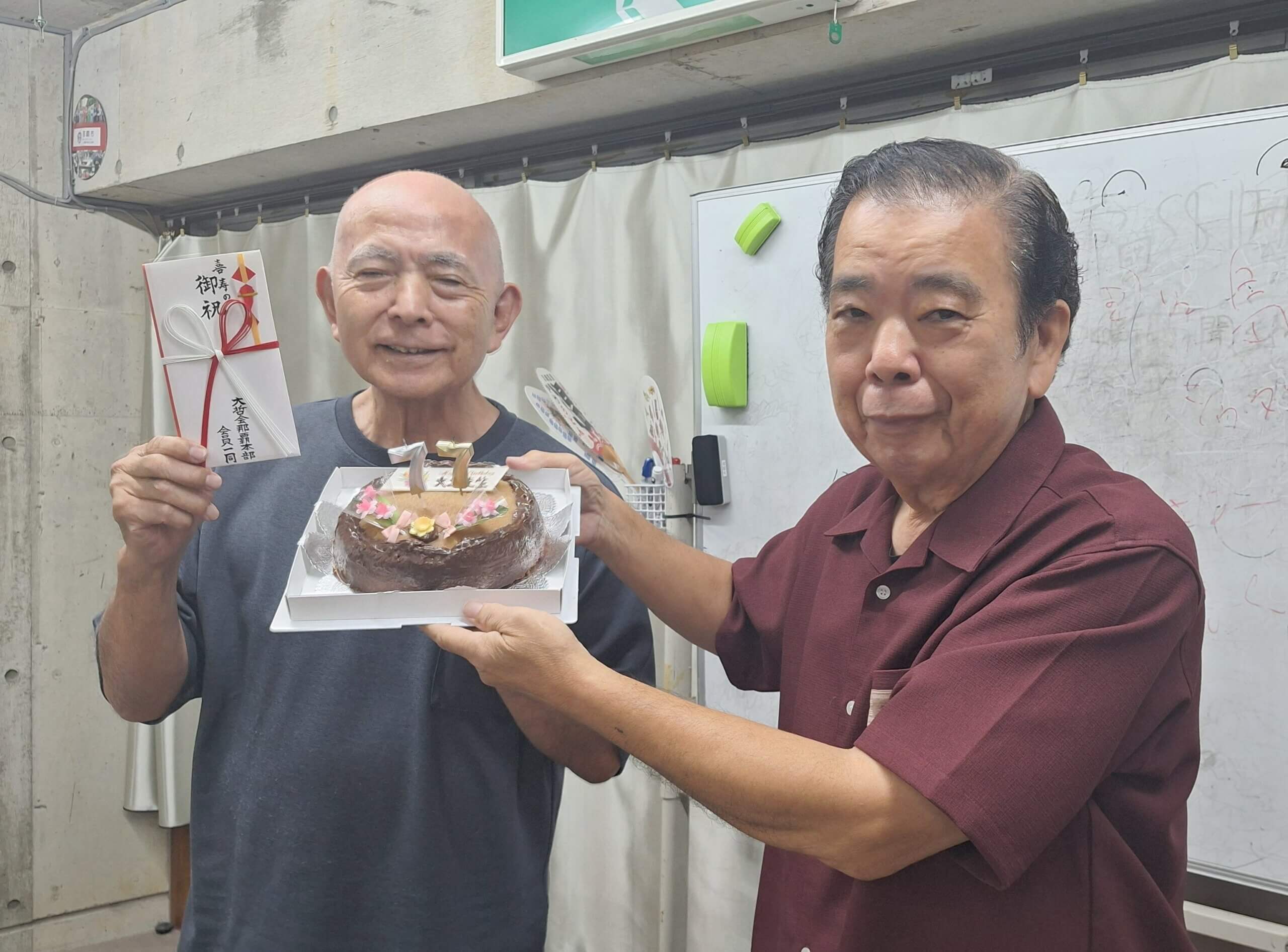 祝って立派なケーキのプレゼント、金一封を頂きました。