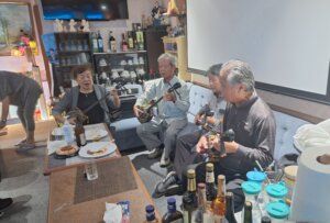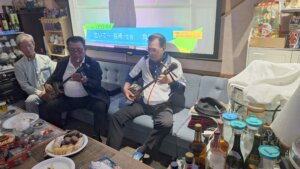 いやいや歌三線にしても皆巧い、カラオケを歌うメンバーも