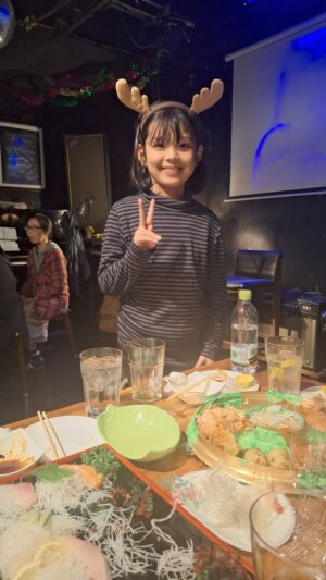 昨夜の会場は、会員で一番若いまりかちゃん(小3)の両親が経営する「カフェ ザ ホログラム シティ」