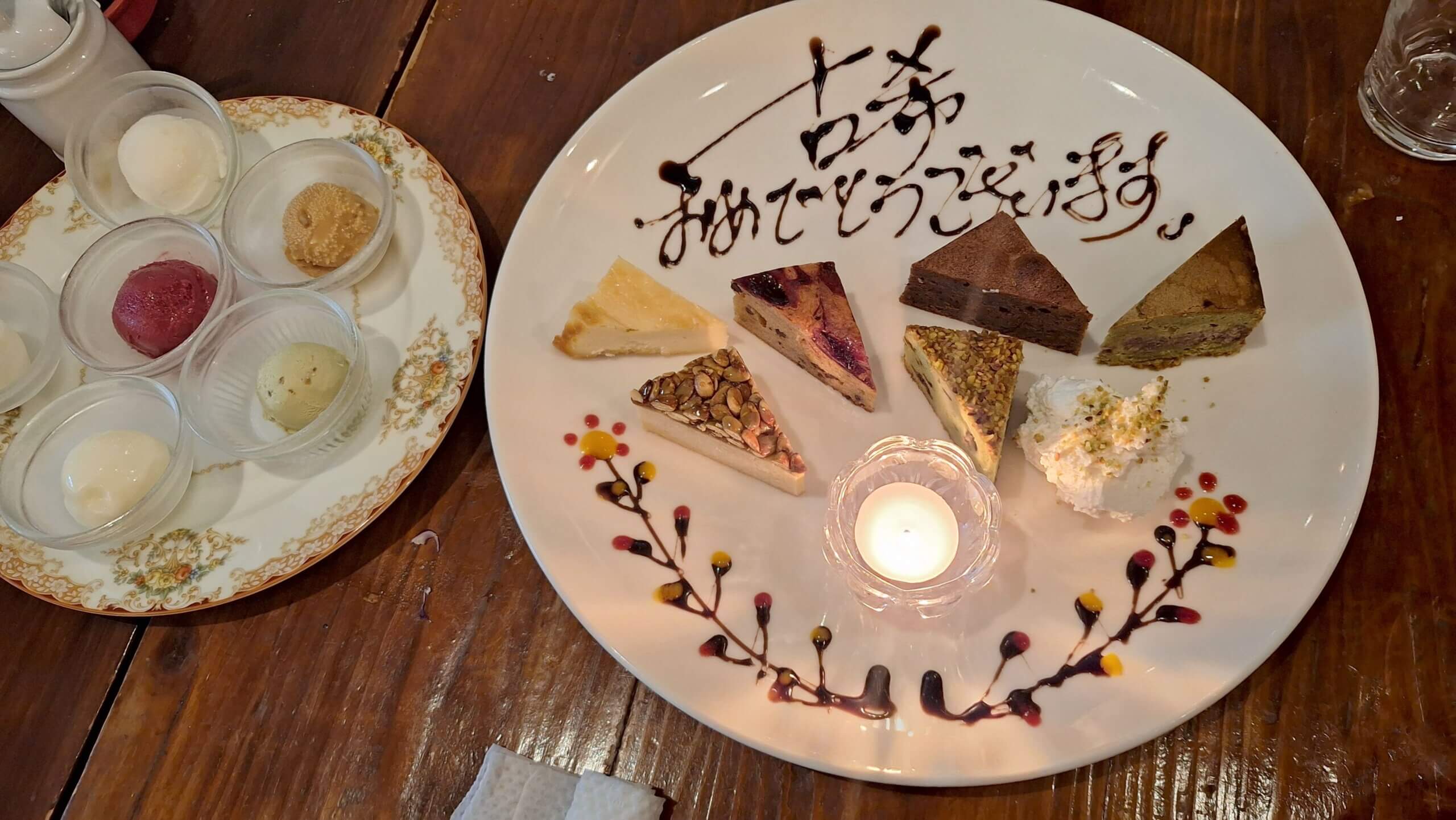 を祝う食事会と店長に伝えたら、ちゃんとチョコレートで古希祝いの文字を皿に