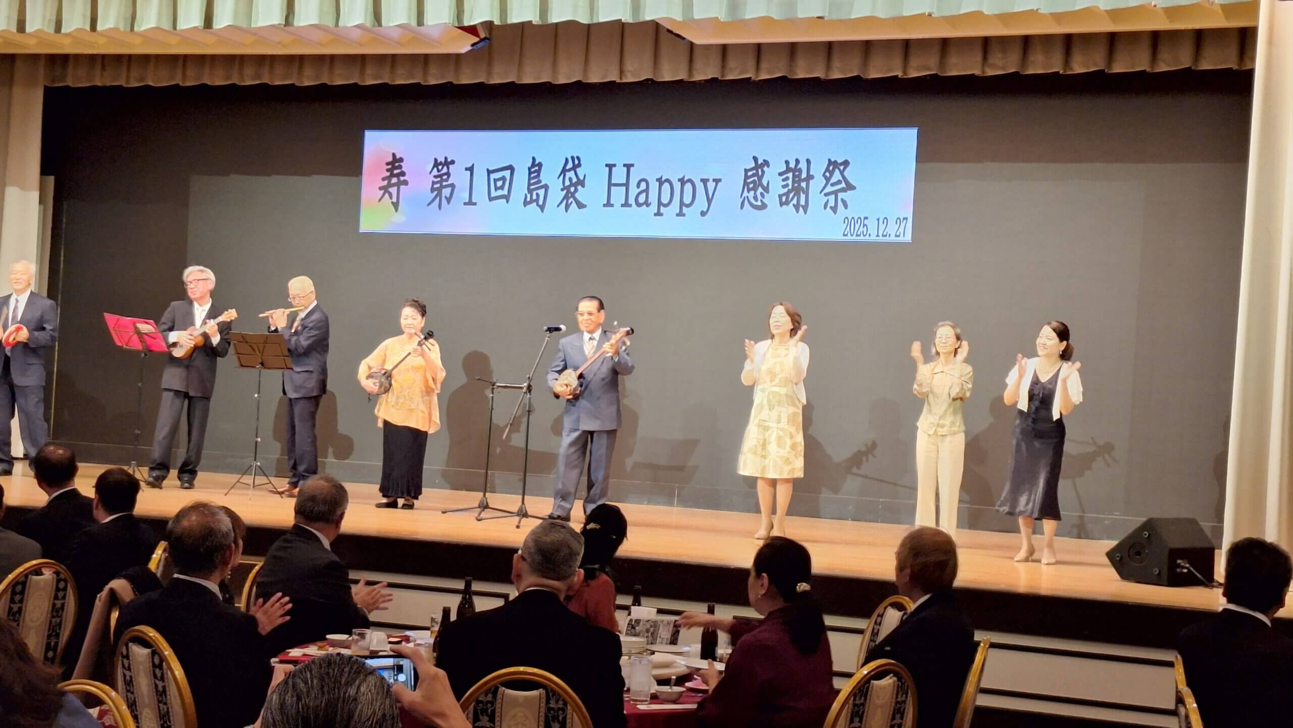 サプライズで二曲演奏と祝いのメッセージを述べて