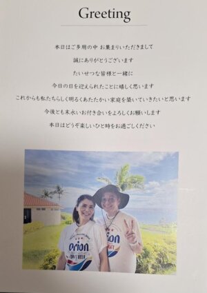 年末慌ただしい時季の昨日27日(土)に島袋久二人(くにと)の結婚披露宴が