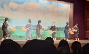 子ども達が元気に踊ってくれた。そして稲を収穫して脱穀までの作業「稲摺り」節は