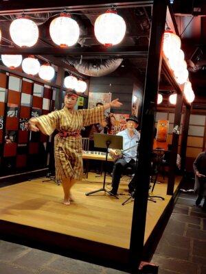 最後は苗子の踊で座を盛り上げた。そしてお客さまも最後は巻き込み今年一年が
