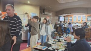 茨城「ガナハン」のお客さまも一緒に浦添にある民謡ライブの店(石嶺和也が切り盛りする)