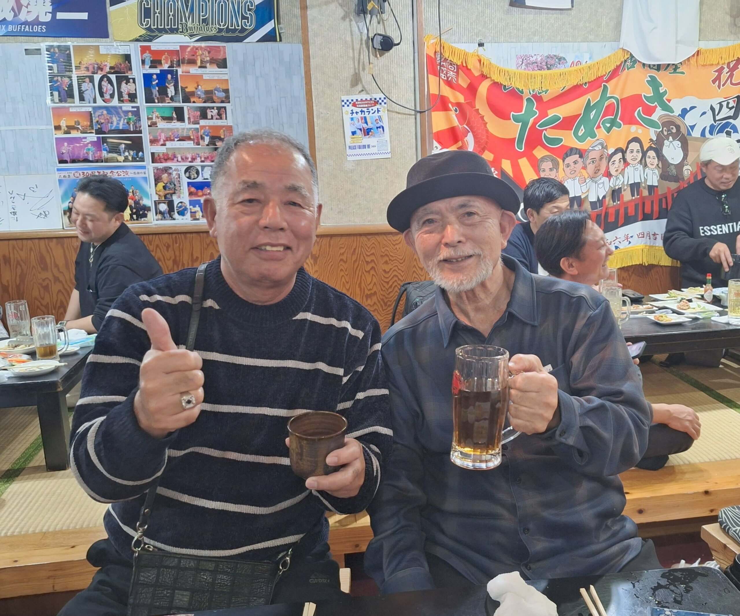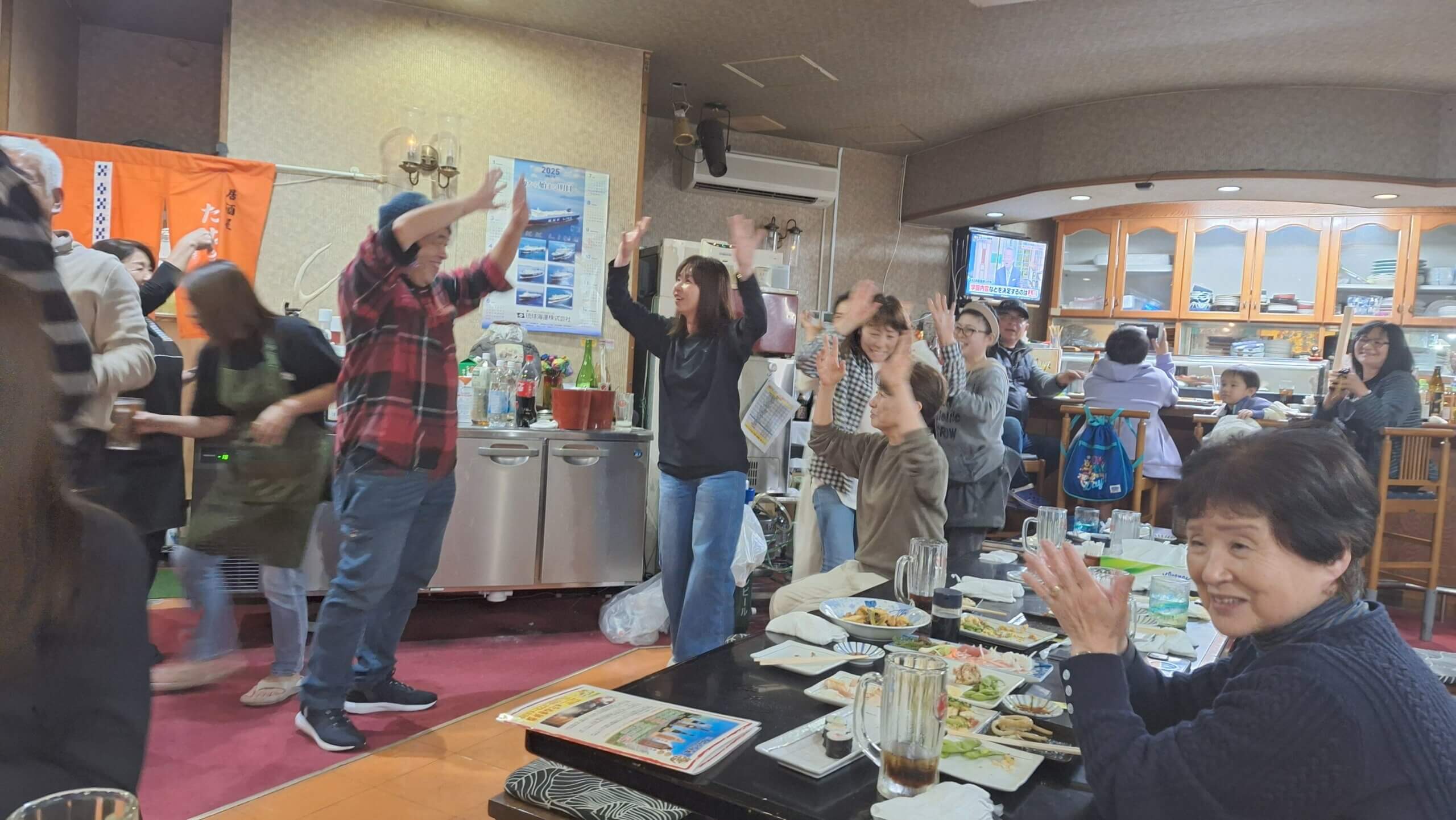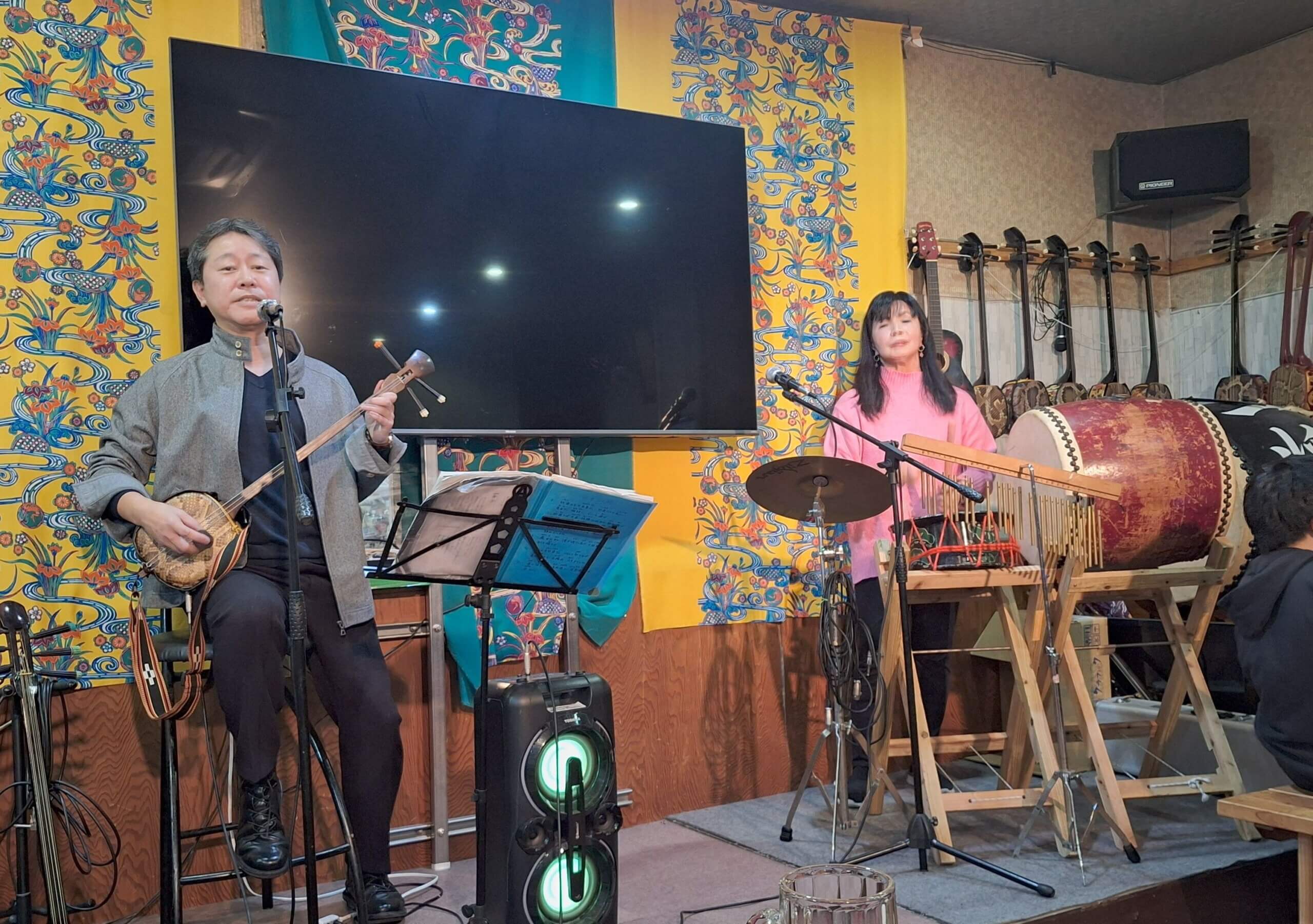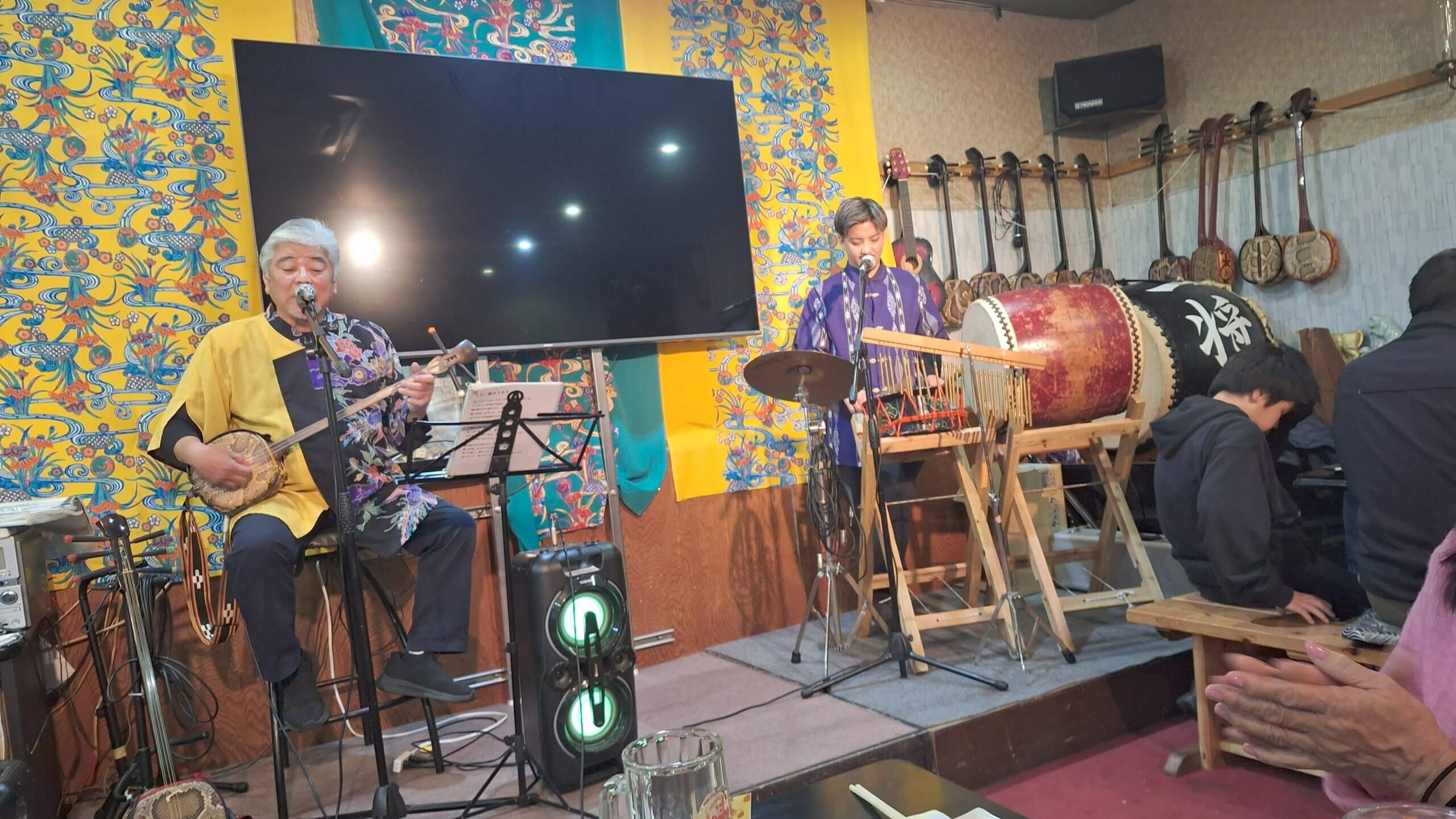 茨城「ガナハン」のお客さまも一緒に浦添にある民謡ライブの店(石嶺和也が切り盛りする)