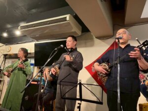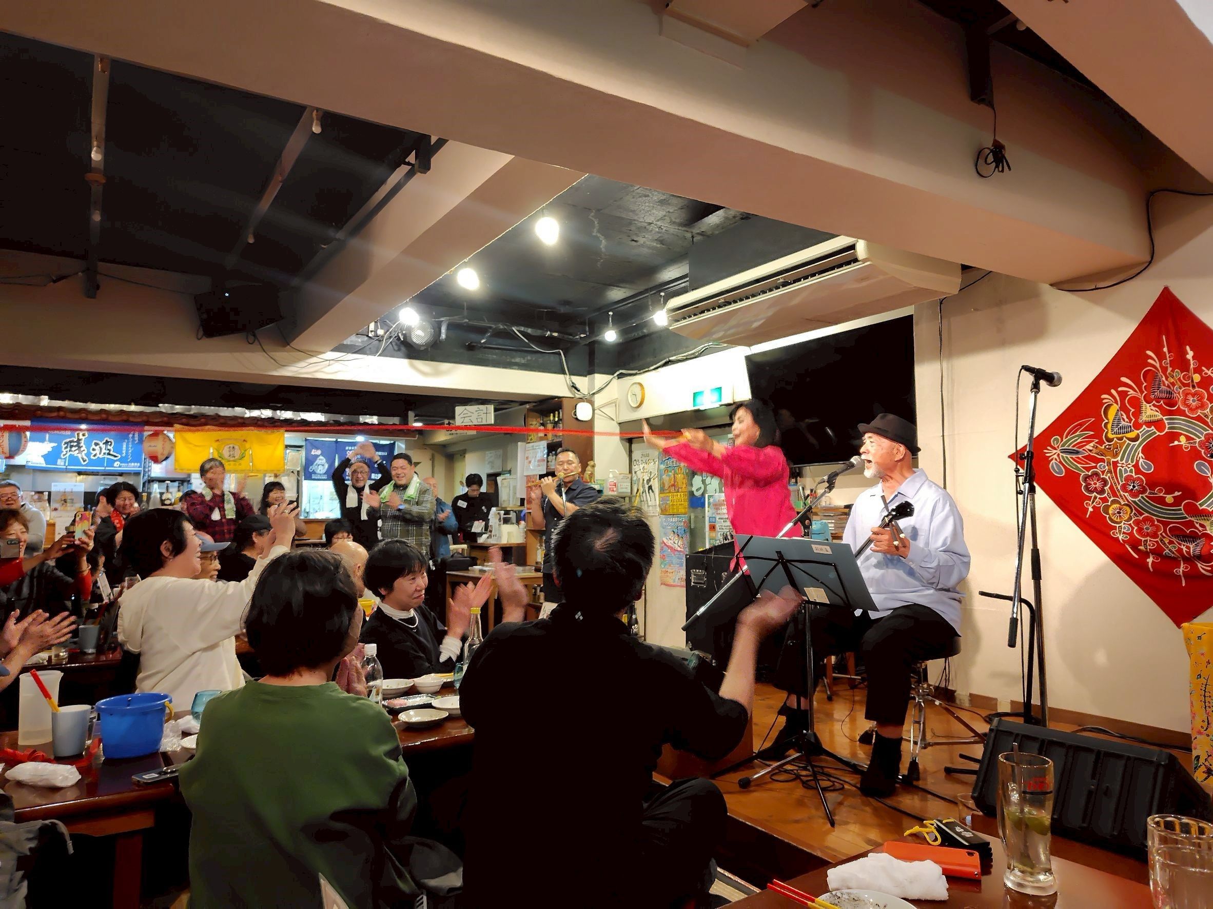 初興しらしく「鷲ぬ鳥節」「目出度節」、「さにしゃ」嘉利(かりー=縁起がいい)な歌からお興したライブは