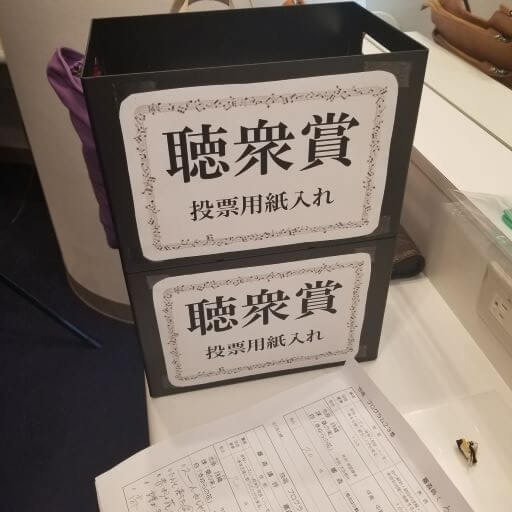 また、会場に聴衆賞箱を設置、選挙の用にお客様がそれぞれの出場者うたを