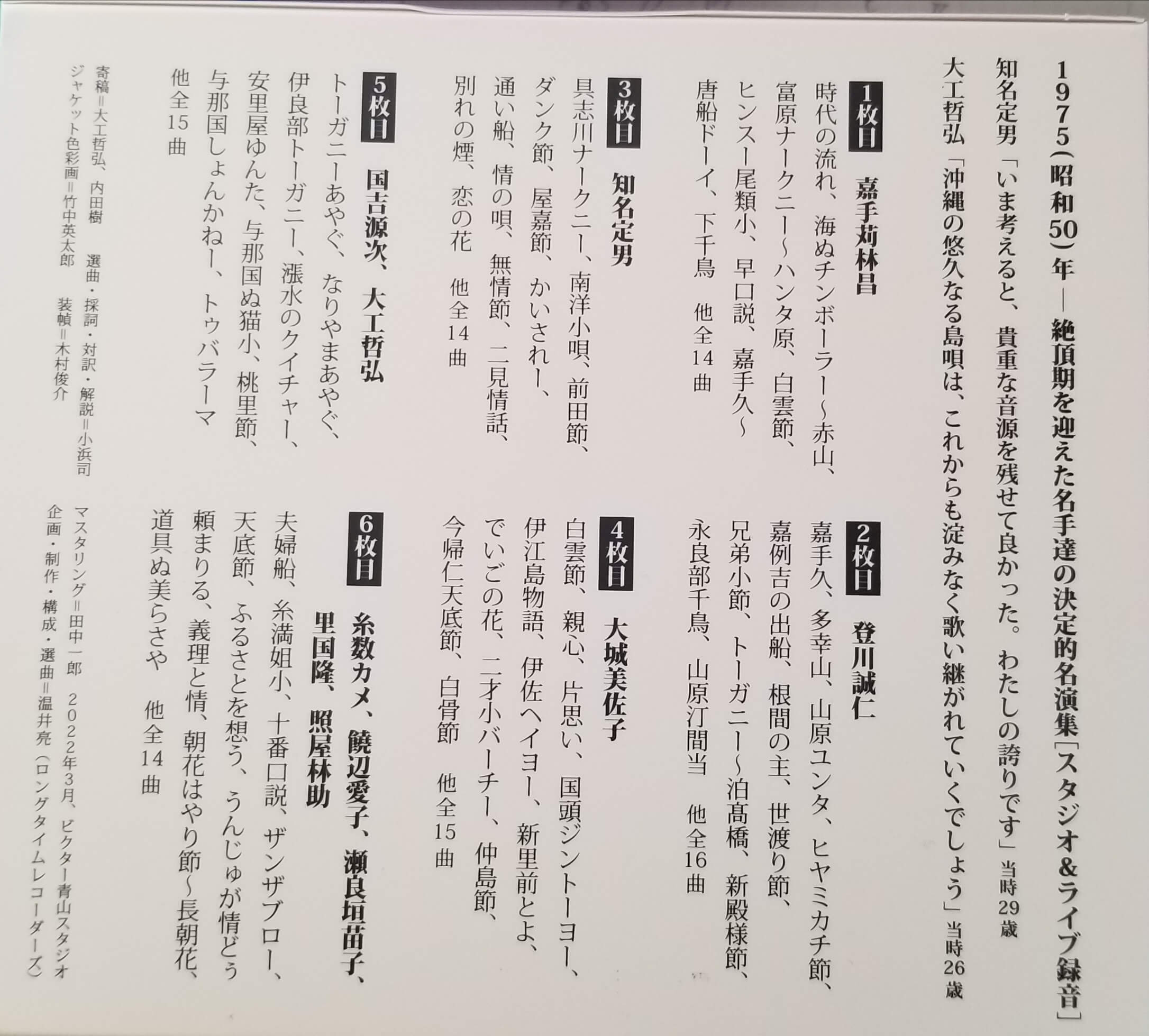 今回のビクター復刻盤で更なる沖縄の島唄が大和、いや世界に響(とよ)まれることを願っております。