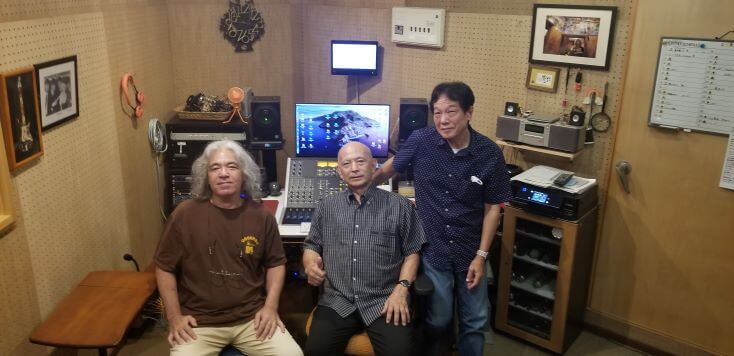 左はスタジオエンジニアの東江さん。右がアレンジをしてくれた嘉手苅さん。お陰様ですばらしく仕上がっております。