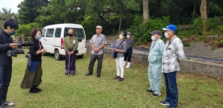 ノーモアージャパンマラリアの長島さんが伊野田で撮影の趣旨を説明。