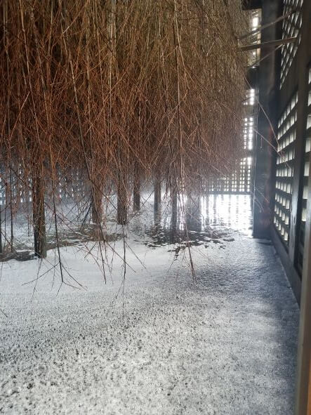 タワー内につり下げた竹枝に掛かったまろやかな塩水のしぶきがかかります。
