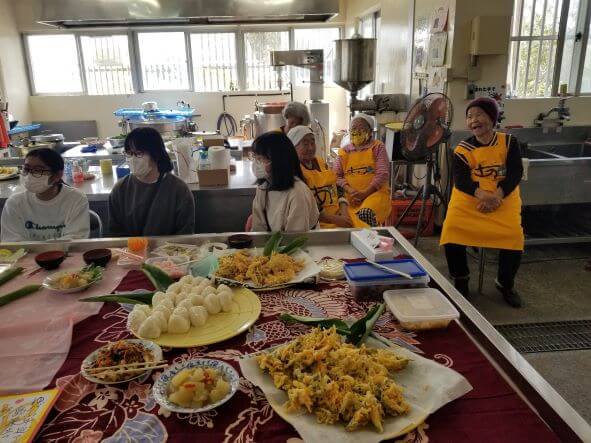 「ちゃーびら祭」でこの春卒業する中学生を招いて粟国の「タンナーじゅーしー」の体感学習会。