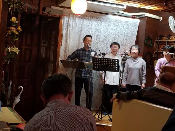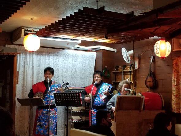 研修会閉会後は課外授業という意味で日頃島人のみ客で楽しむコアな民謡酒場(津嘉山在・綾姫)を
