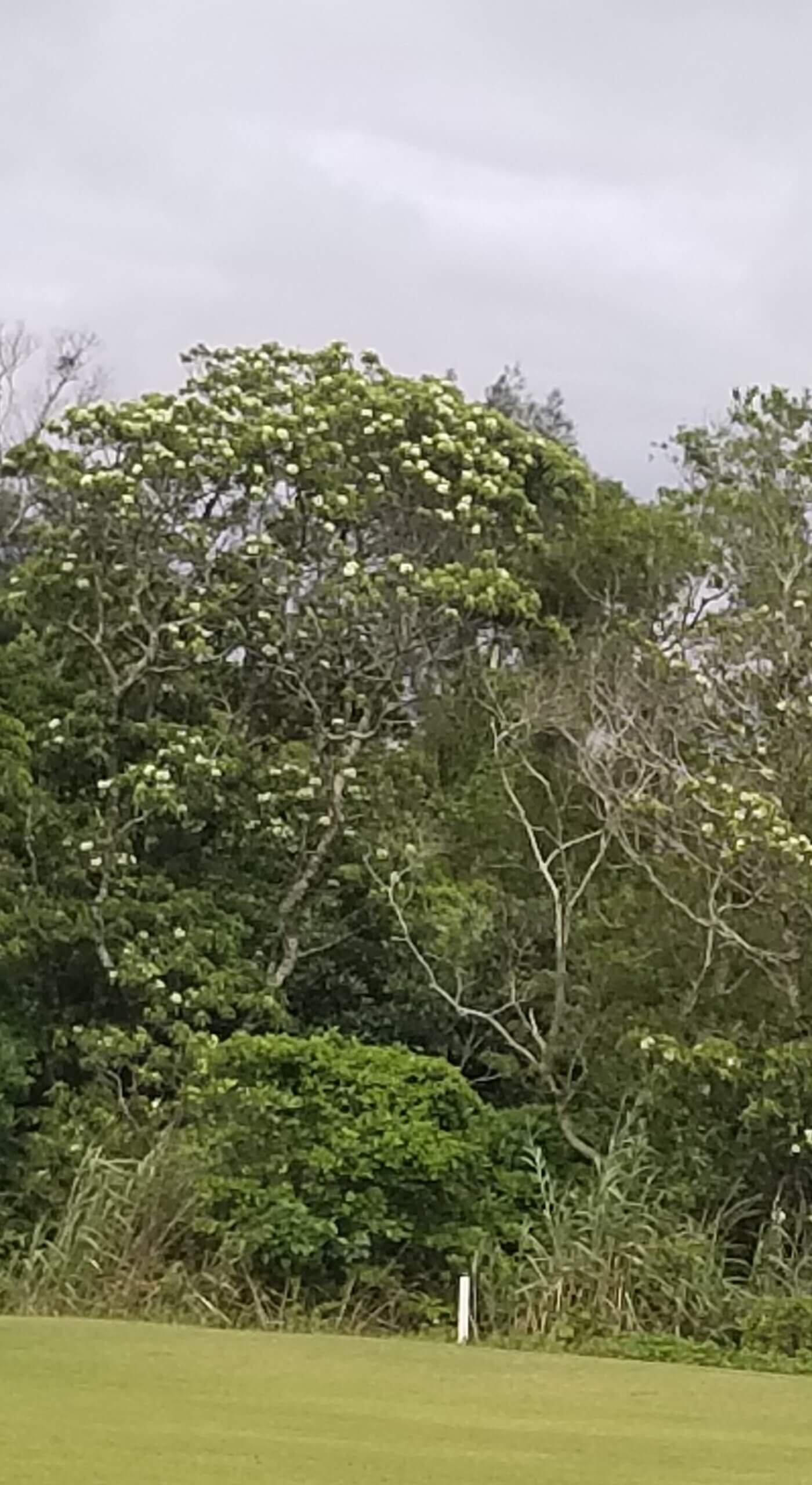 花芯は淡黄色で20メートルにものびる高木で花は枝の先に集まって綺麗に真白く咲く。