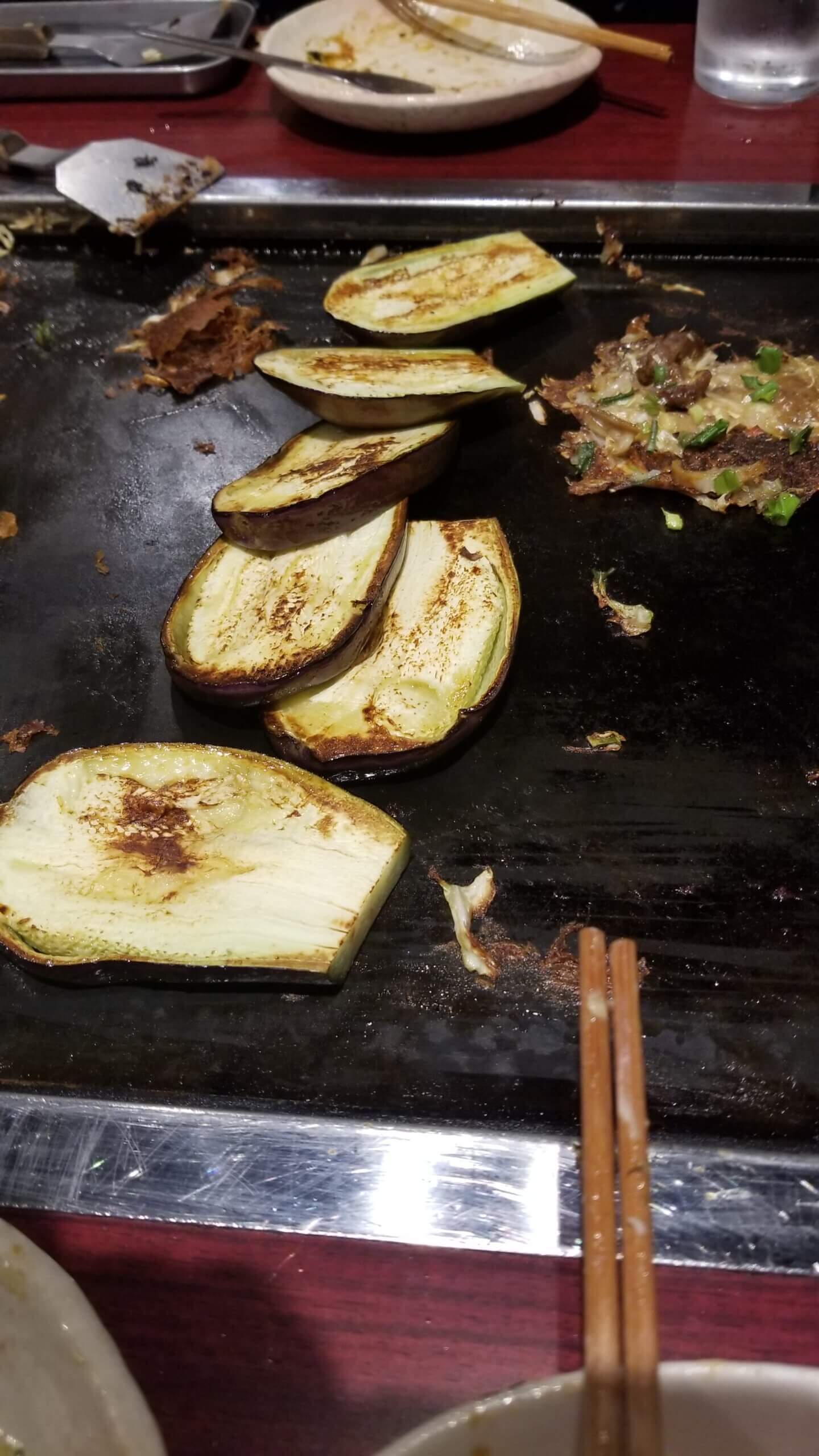 堺支部のみなさんと もんじゃ焼きの美味しいお見せ。泉州の名産「水なす」も美味しかった。