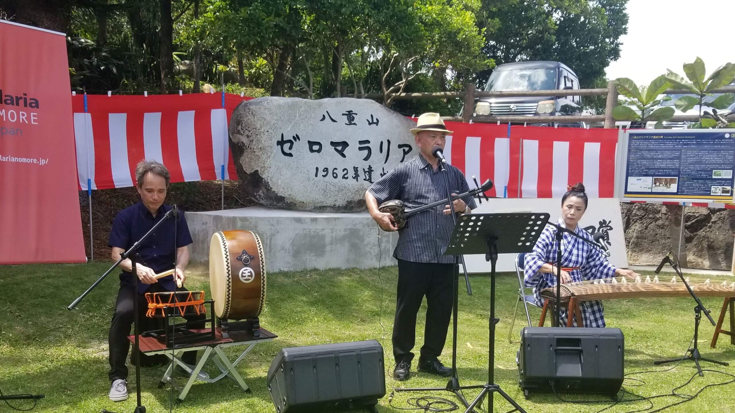 式典では♪「マラリア撲滅の歌」を奉納しました。太鼓は根原格さん