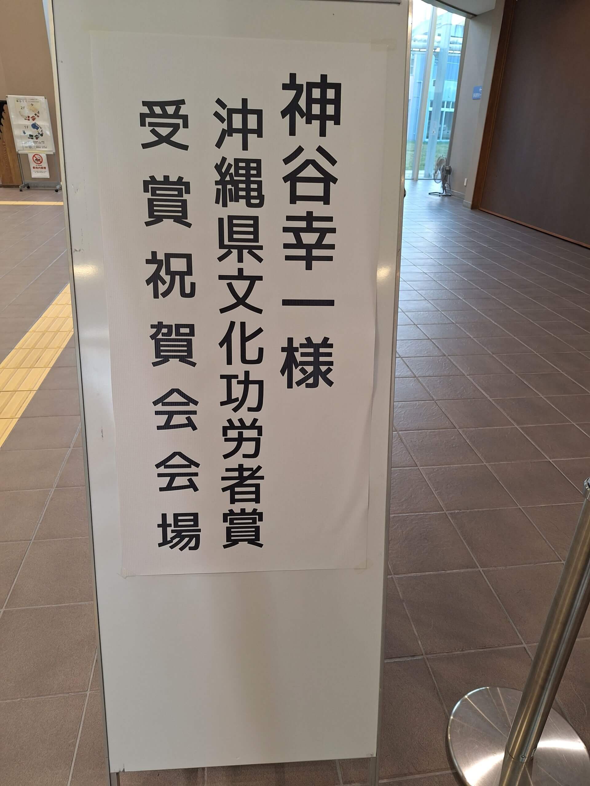 副会長の神谷幸一氏の受賞祝賀会がうるま市にある「生涯文化センター・ゆらてく」