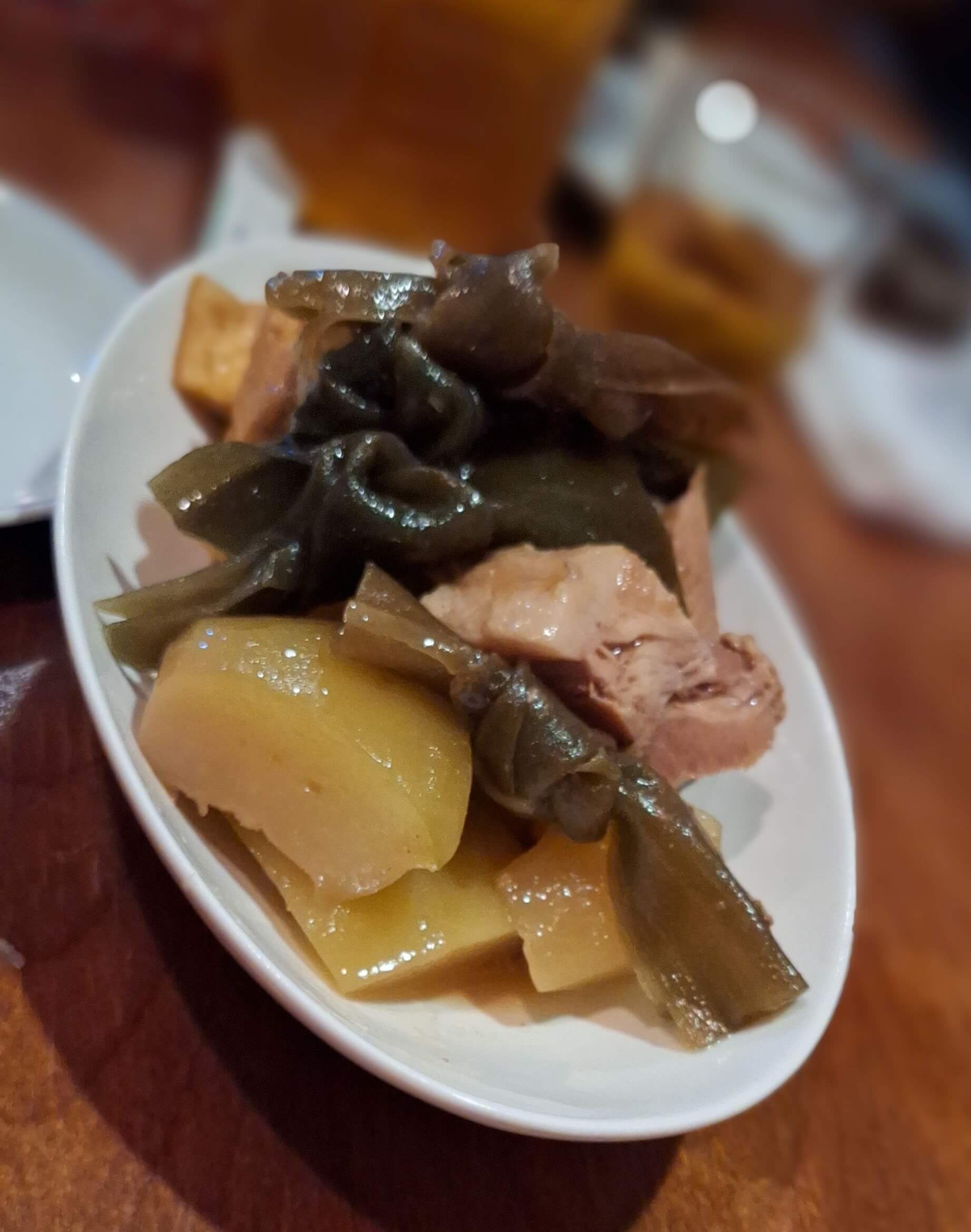 ティビチ(上)と下の昆布巻とパパイヤの煮付け