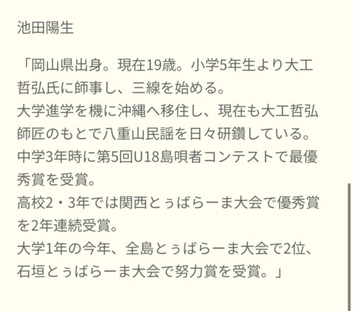 那覇本部の池田陽生さんの初ライブのお知らせです。