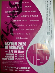 去った15日の日曜日、「ASYLUM 2026 IN OKINAWA」に出演する池田陽生君の応援に桜坂劇場に行ってきました。